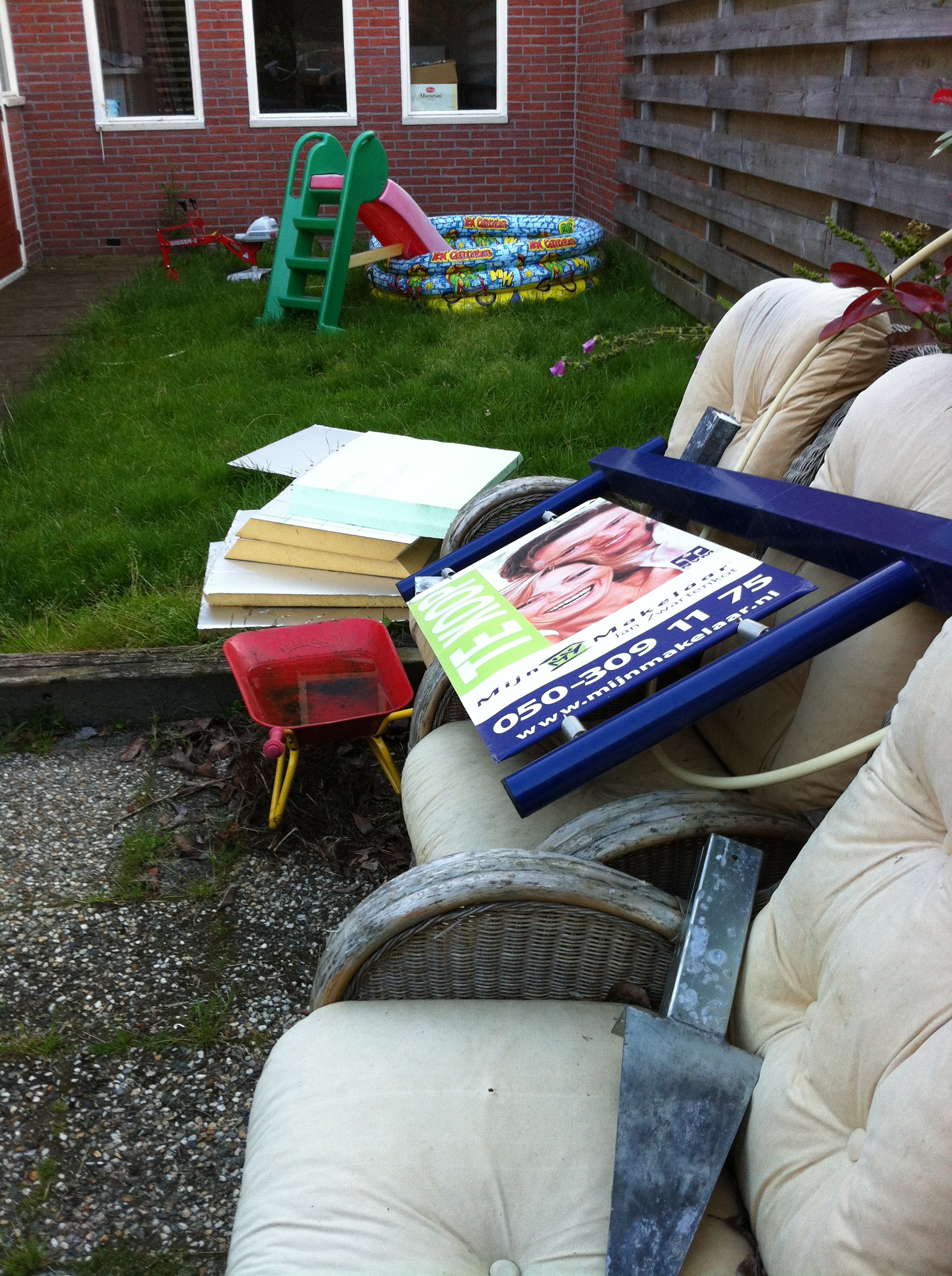 Meneer is ook bang. Hij reedt tijdens ons demontagewerk een paar keer langs maar durfde niet zijn pand binnen te gaan. Hij reedt snel weer weg.